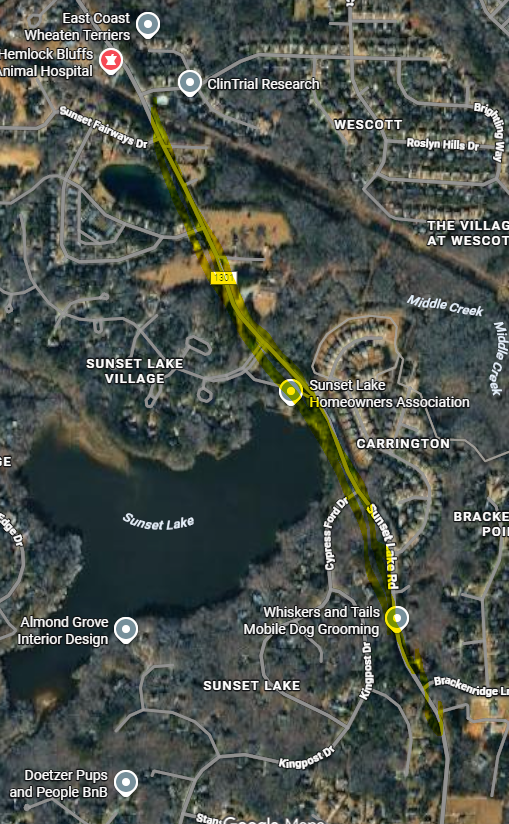 We’ll start at the middle of our section. 1/2 the crew will head north, up one side of Sunset Lake and back down the other side. While the other 1/2 of the crew will head south down the road, up one side back on the other side, and we’ll all meet back in the middle to travel back to the church.